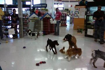 Bring your puppy in from 12-2 pm. No barriers but made sure pups had a good play bud also wasnt afraid to let owners know that their pups needs a break. Proof of age appropriate.